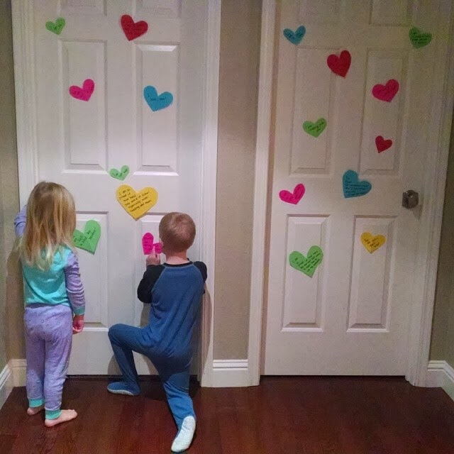 In the article, the mom does this for her kids but I also love the idea of having siblings make a heart for each other each day.